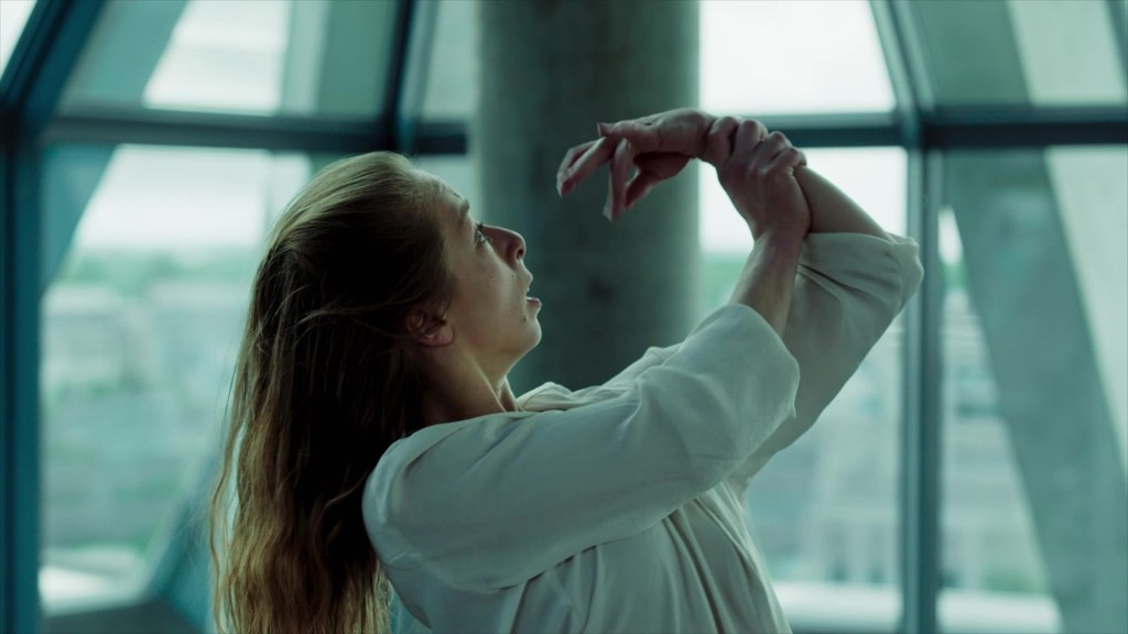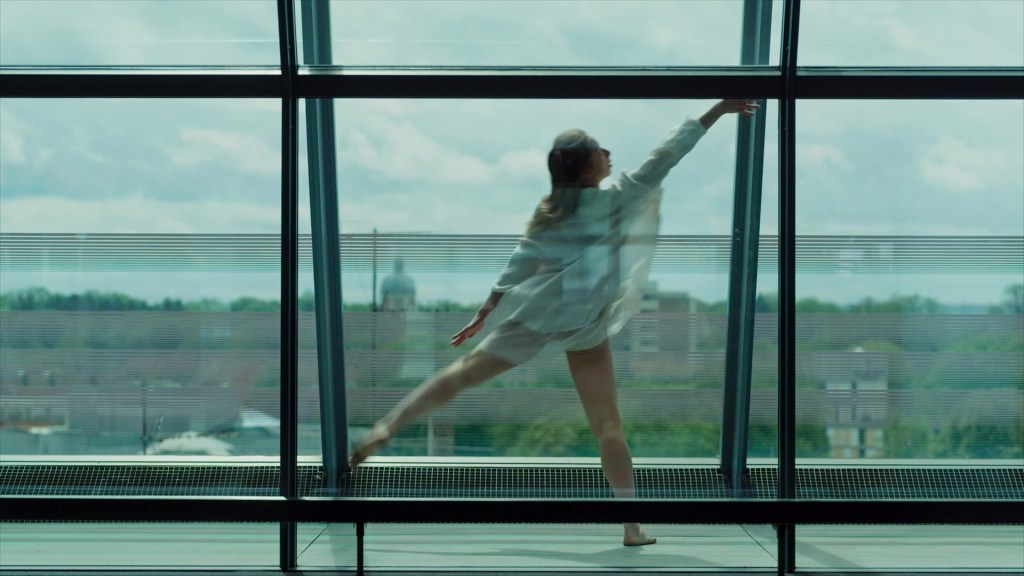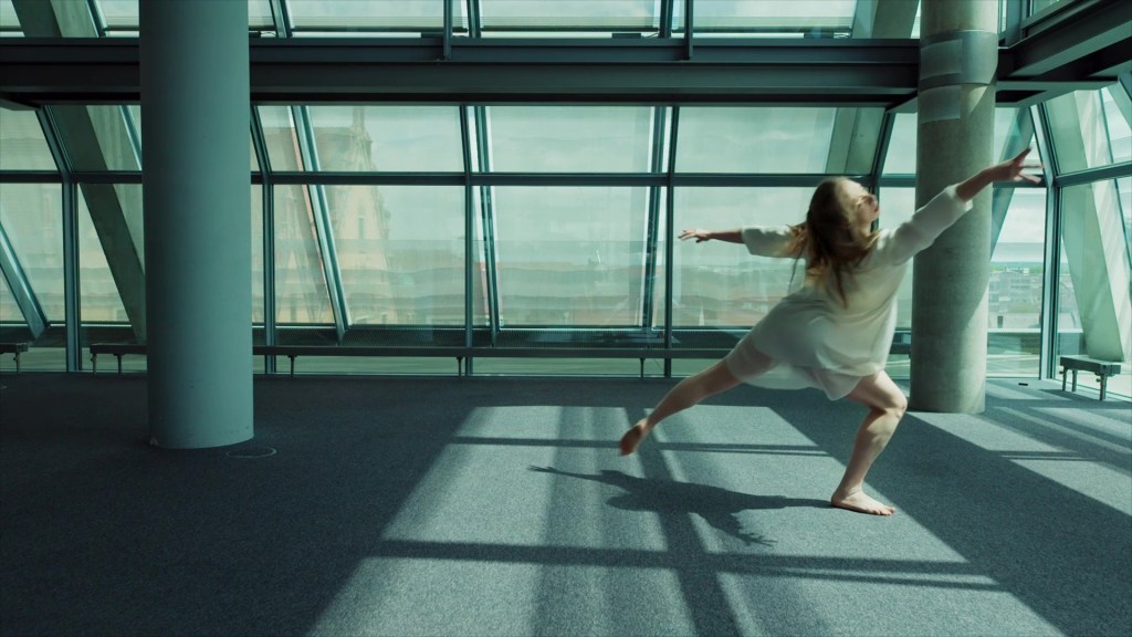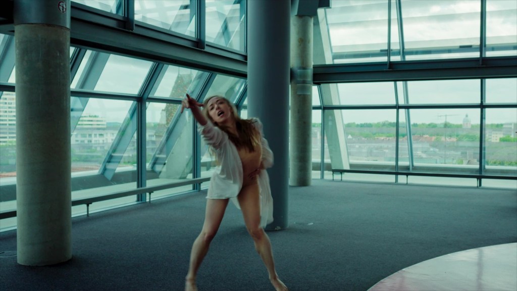 The Russian ballet dancer Maya Mayzel gives expression to this desperation in a choreographer by Marijana Popovic and dances to the music of Yann Tiersen’s “On the Wire” (“Sur le fil”) in the closed cafeteria of Ulm City Library.