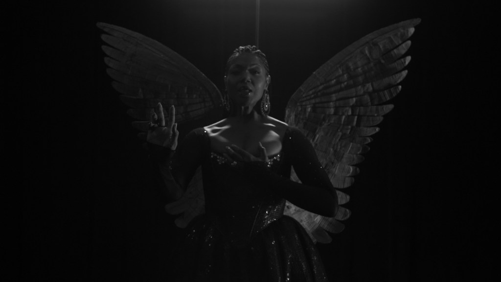 The Angel, in turn, bends her face so close to that of the Virgin, that the encounter instills something beyond ecstasy—the Angel’s encounter with perfection engenders terror—a terror that becomes the catalyst for song.