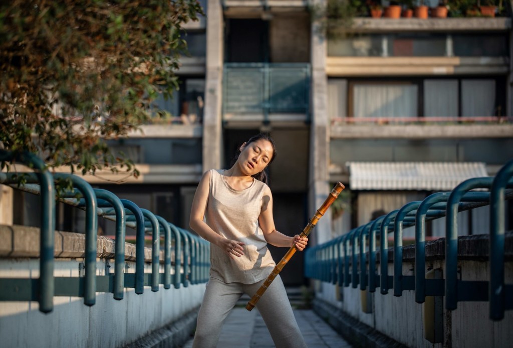 ‘DanSang – the city’ is an exploration of new ways for music and movement to interact with surrounding spaces. Using the Korean bamboo flute taegŭm, native South Korean musician Hyelim Kim interacts with the landscape and soundscapes of urban London. The city becomes a multifaceted stage (‘dansang’ in Korean), which in turn transforms simultaneously into a nest and battlefield for a musician of ethnic minority background. Expressed through Kim’s music and movements, this film (with the music and sound recorded entirely live on-site, and with a fully live improvised score) explores how the non-Western female voice could express itself within the context of the cosmopolitan Western environment of the U.K., where it could easily be drowned.