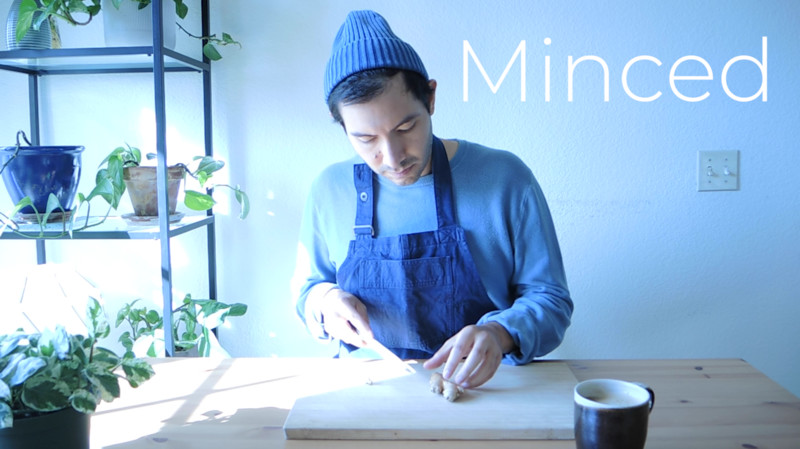 Marcos has found mincing herbs and vegetables to be a therapeutic “flow” activity during the pandemic. It is a way to awaken the senses, lose track of time, and experiment with how textured ingredients come together to nourish the body. This work uses mincing as a metaphor for many different topics. It specifically expresses a process of transformation. Other words for transformation are: change, amendment, mutation, and (r)evolution. Do these words sound familiar?