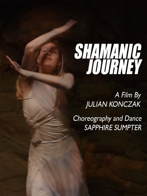 Shamanic Journey is a collaboration between filmmaker Julian Konczak and choreographer Sapphire Sumpter. The film incorporates ancient sites and the wildness of the West Penwith landscape with a choreographed dance sequence unfolding across underground caves and wide-open heaths. The camera remains static, allowing the performance to portray transitions into the archetypal spaces of shamanic journeying – the upper world and lower worlds of compassionate spirits that reveal elements of the soul to the self. The film draws on a distinct visual style that evokes the existence of the soul within multiple worlds and the magical properties of the elements.