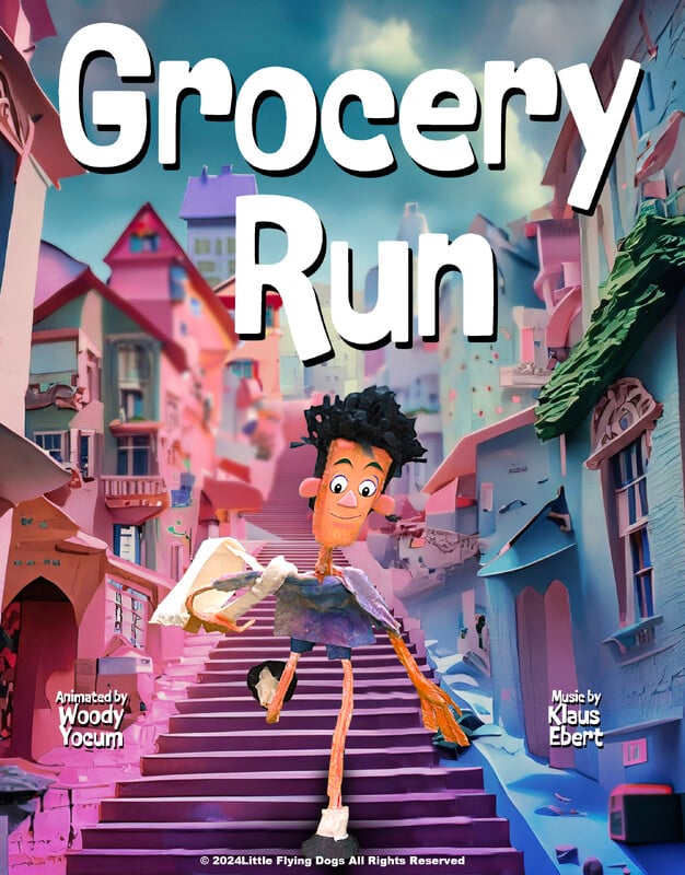 Just a quick run to the store for milk and eggs….and everything we could squeeze into two minutes flat. Directed and animated by Woody Yocum. Music composed and performed by Klaus Ebert.
