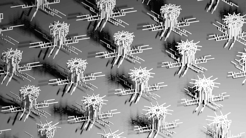 A simple random walk is a discrete-time stochastic process that describes a path generated by a sequence of random steps. Starting from a defined point, in this case, the origin, each step is taken with a fixed probability in a fixed direction. The crucial characteristic is that the direction of each step is chosen independently of all previous steps. A line traversing these paths is repeated and elaborated with standard symmetric and phasing transformations creating an elegant geometric ballet.