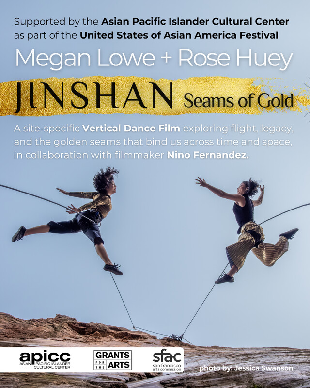 Set against a majestic outdoor rock wall, “JINSHAN: Seams of Gold” is a site-specific vertical dance film that reimagines gravity as a partner in storytelling. Harnessing the power of rock climbing technology, dancers are lifted into the air—not just to defy gravity, but to awaken a sense of flight, freedom, and deep connection. Suspended in space, they soar, tumble, and reach across stone surfaces, turning sheer rock into a canvas for memory, imagination, and transformation.